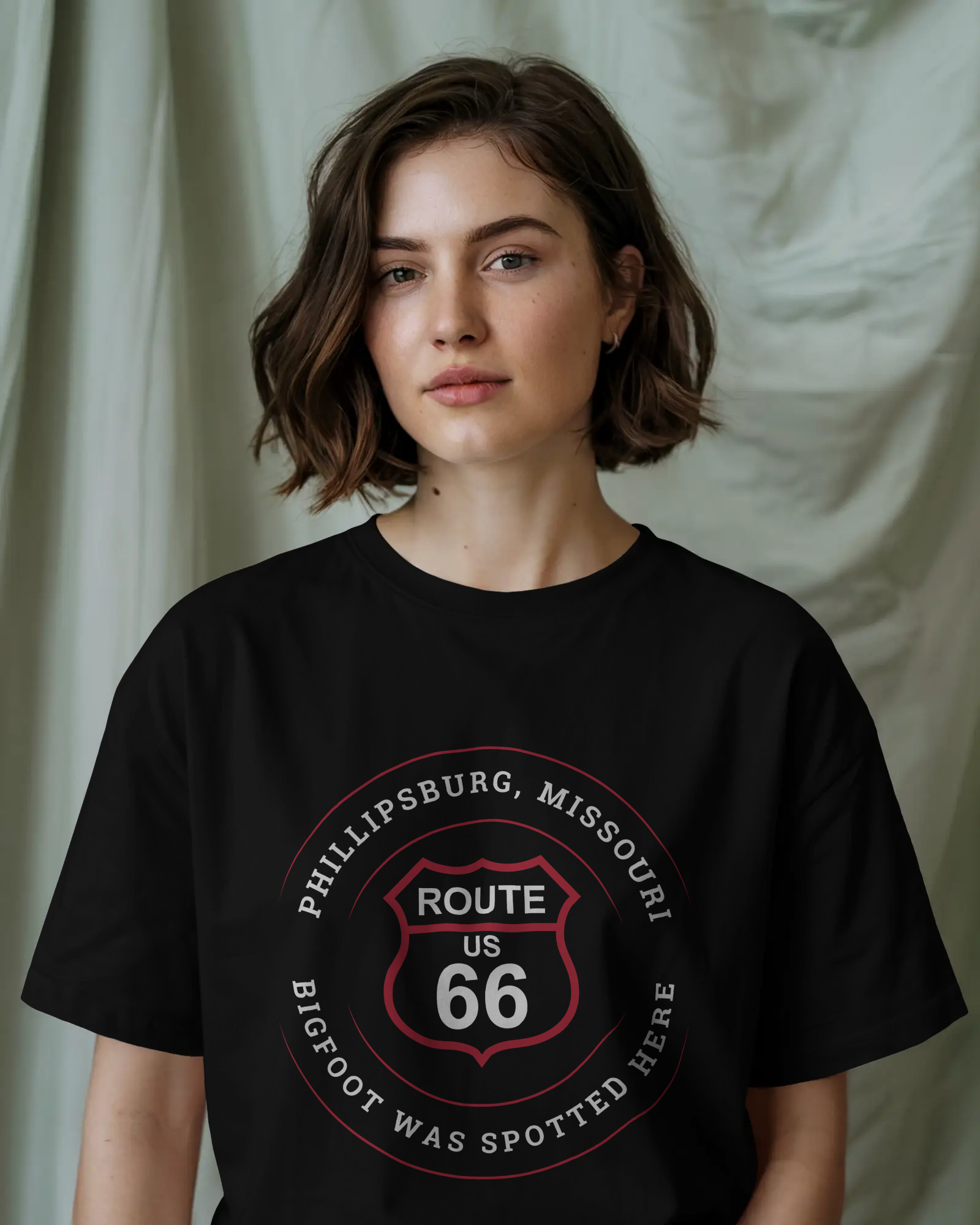 Celebrate the quirky side of the Ozarks with this ultra-soft unisex jersey tee, crafted from 100% Airlume combed and ring-spun cotton. Featuring the playful slogan, “Bigfoot Was Spotted Here,” this design honors Phillipsburg, Missouri: a Route 66 stop that made headlines in 2014 with a reported Bigfoot sighting.