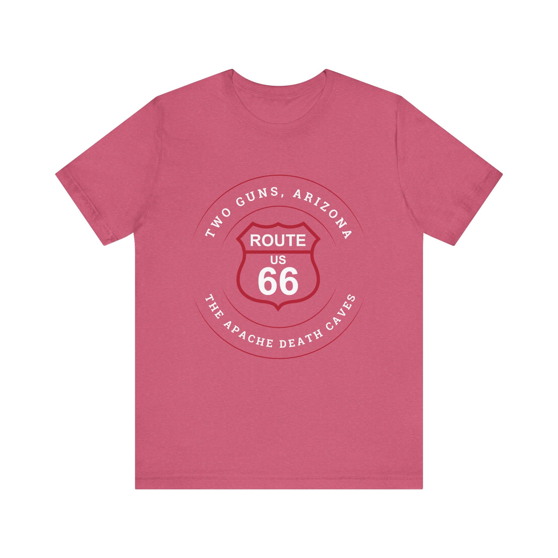 Crafted from ultra-soft 100% Airlume combed and ring-spun cotton, this unisex jersey tee blends everyday comfort with the eerie mystique of Route 66 folklore. Featuring the haunting slogan "The Apache Death Caves," it celebrates Two Guns, Arizona: a ghost town steeped in tragedy, legends, and desert mystery.